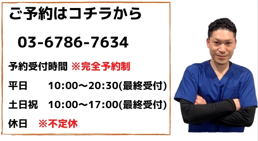 返信までお時間を頂く場合もございますが、後ほど必ずご連絡いたします。 なお、施術中は電話対応できないため、LINEでのご予約が好ましいですが、お電話を頂いて電話に出れなくても留守番電話にお名前を入れていただけると折り返しお電話をさせていただきます。